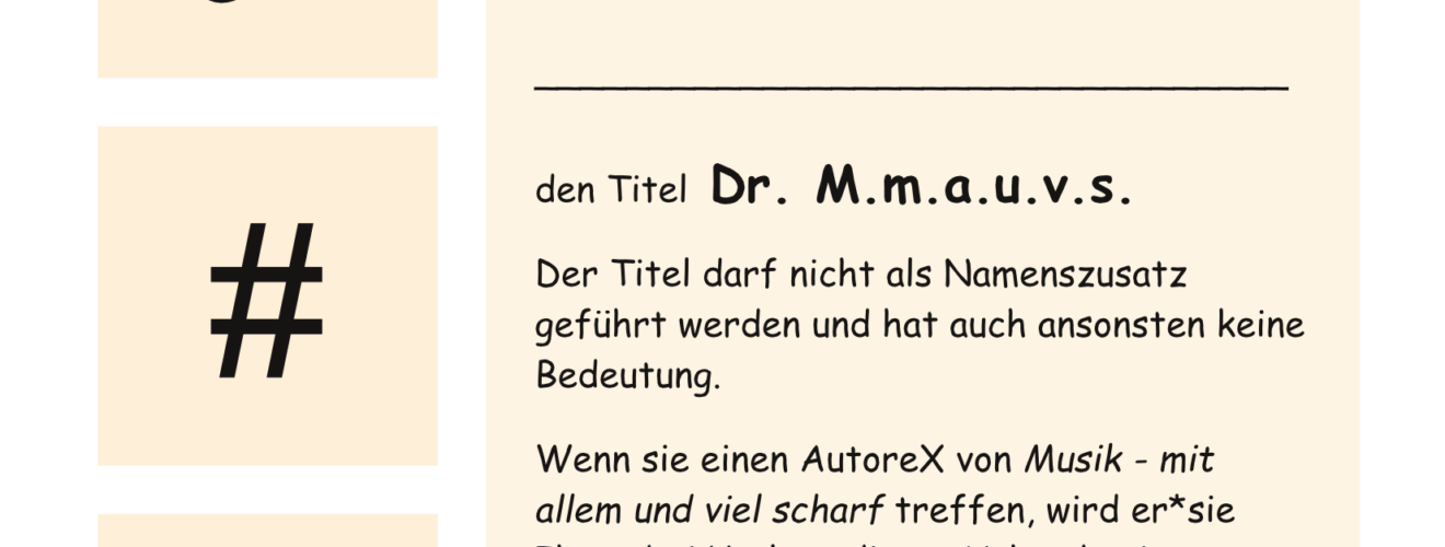 Wir dürfen voller Freude und Stolz verkünden, der erste Dr. m.m.a.u.v.s. wurde vergeben.
