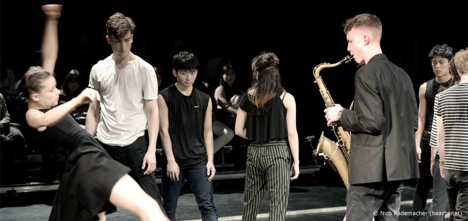 Wie auch immer: Da finden also zwei Perlen von Konzert statt, jeweils das Resultat harter und genialer Arbeit von Studierenden der Musikhochschule Mannheim. Das erste unter dem nichtssagenden, weil frühzeitig in die Druckerpresse berufenen Titel „Tanz, Lied, Jazz“ #somuchwow – ein Jazzquartett, zwei Singer-Soundkünstler und die Tanzabteilung entwickeln gemeinsam aus Liebesgedichten des Ingeborg-Bachmann-Preisträgers Michael Lentz eine furios-packende, sehr runde Performance zwischen Free Jazz, südamerikanisch angehauchten Songs und wilden Percussion-Sprints, wertvoll angereichert mit Paartanz-, Show- und Tanzbattleeinlagen. Beides, Tanz und Musik, ergänzen sich super, ja, reagieren aufeinander in großzügig ausgebreiteten Improvisationsteilen und inspirieren sich dort gegenseitig – mit die stärksten Momente des Abends. Das andere Konzert: auch geil – aber ich schweife ab. (Unser stillschweigender Blogkodex verbietet ja „reine“ Konzertkritiken.)